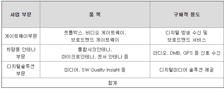 나. 주요 제품 등의 현황