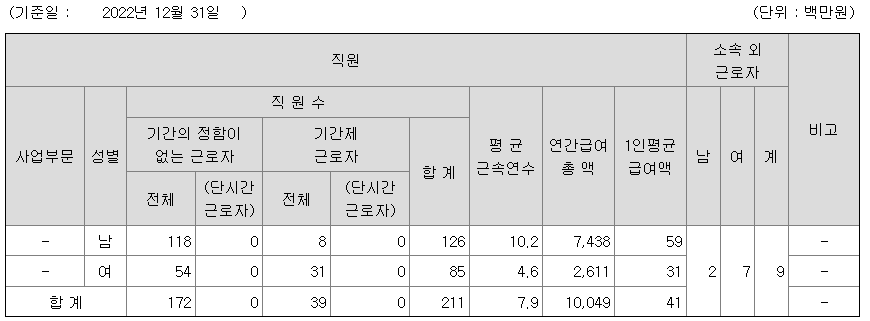 | 현우산업 연봉 2022년 기준 공시자료 (0) | 2024.03.03 |