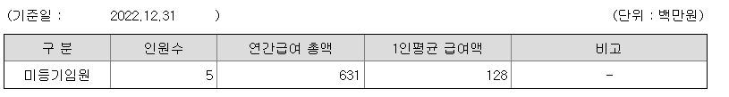 미등기임원의 평균연봉은 1억 2800만원이고 직원수는 5명입니다.