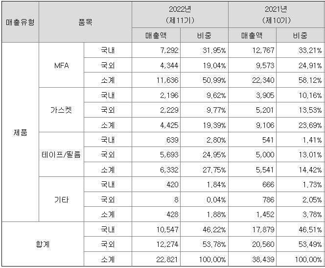 가. 매출실적