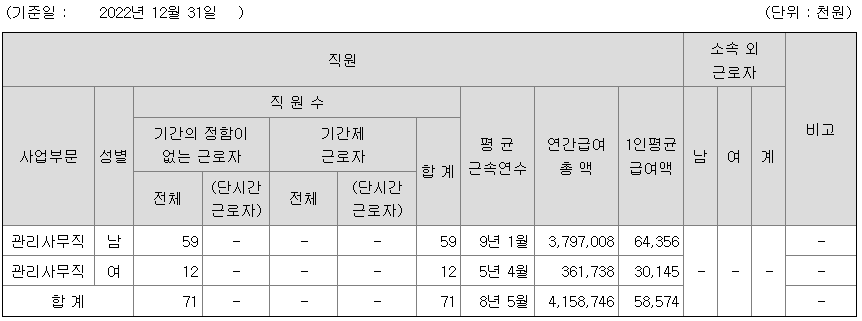 미등기임원의 평균연봉은 1억 2954만원이고 직원수는 7명입니다.