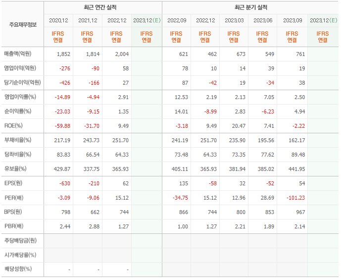 2022년 매출은 2004억, 영업이익은 58억, 당기순이익은 27억입니다. 그리고 영업이익률은 2.91%입니다.
