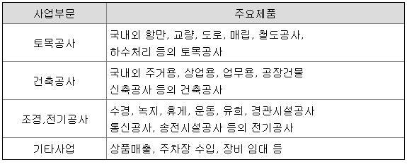 가. 지배기업(남화토건)의 주요 제품 등에 관한 사항