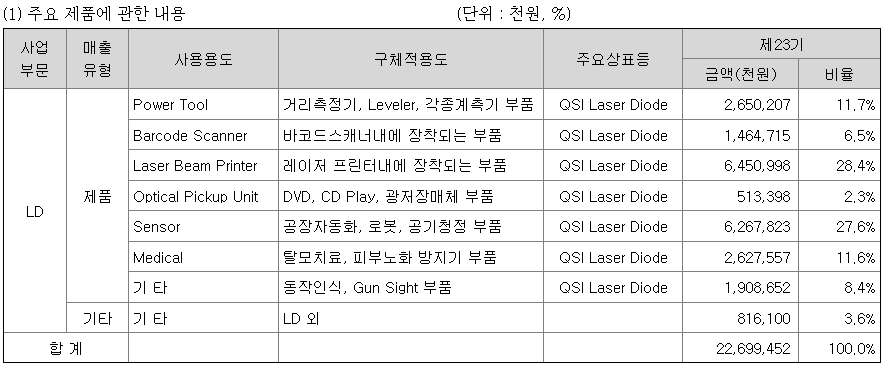 연결회사는 Laser Diode를 주요제품으로 제조, 판매하고 있습니다.