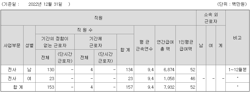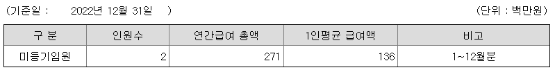 미등기임원의 평균연봉은 1억 3600만원이고 직원수는 2명입니다.