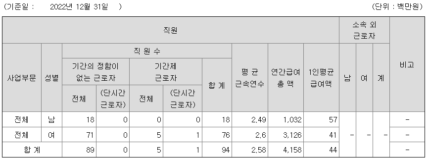 미등기임원의 평균연봉은 1억 2800만원이고 직원수는 2명입니다.