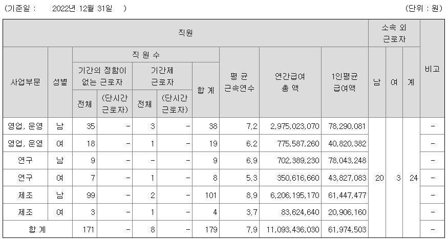 전체 평균연봉은 6197만원이고 직원수는 179명입니다.