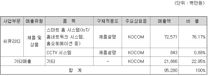 당사는 지난 약 40여년간 축적된 기술력을 바탕으로 스마트 홈 시스템(IoT; Internet of Things/홈 네트워크 시스템, 홈 오토메이션), 비디오 도어폰, 도어폰, 인터폰, CCTV시스템부터 프로젝트산업인 SI사업에 이르기까지 전자통신기기 전문회사로서 위치를 확고히 하고 있으며, 국내 업체로는 최초로 인터폰에 영상을 첨가한 비디오 도어폰을 출시하고 국내 홈 네트워크 시스템/홈 오토메이션 시장을 개척한 선도기업입니다. 첨단 산업 선도기술인 홈 씨큐리티 응용기술인 사물인터넷 데이터 통합분야로의 진출을 모색하여 왔으며 현재 이러한 분야에 성공적으로 진출한 상태입니다. 또한 국내 뿐만 아니라 해외 시장 개척에도 박차를 가하여 현재 수출국가수는 100여 개국에 이르고 있습니다.