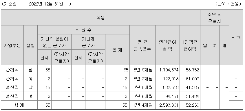 전체 평균연봉은 5223만원이고 직원수는 55명입니다.
