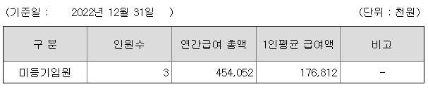 미등기임원의 평균연봉은 1억 7681만원이고 직원수는 3명입니다.
