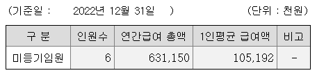 미등기임원의 평균연봉은 1억 519만원이고 직원수는 6명입니다.