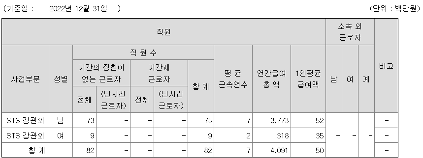 유에스티 연봉 2022년 기준 공시자료