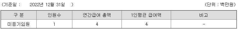 미등기임원의 평균연봉은 400만원이고 직원수는 1명입니다.
