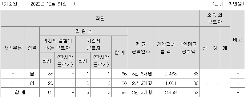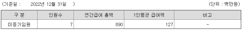 미등기임원의 평균연봉은 1억 2700만원이고 직원수는 7명입니다.
