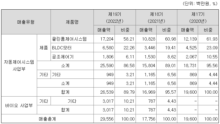 당사는 클린룸 제어시스템, 냉난방 공조시스템 및 환기 제어시스템 제조 및 판매업과바이오(현장진단기기 제조)사업을 주된 사업으로 영위하고 있습니다. 주요사업과 관련된 자세한 사항은 동 보고서 "Ⅱ. 사업의 내용"을 참조하시기 바랍니다.