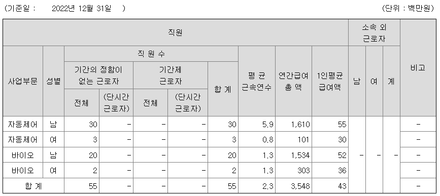 미등기임원의 평균연봉은 1억 1800만원이고 직원수는 3명입니다.