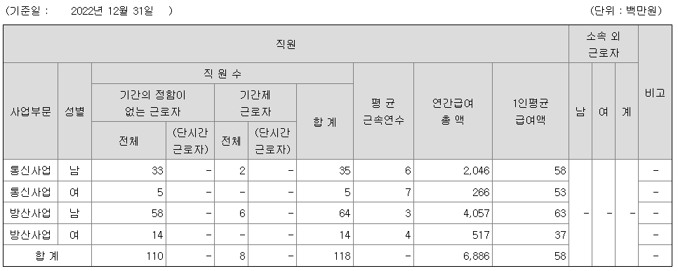 웨이브일렉트로 연봉 2022년 기준 공시자료