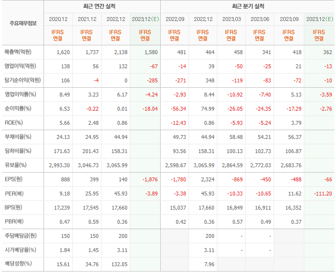 2022년 매출은 2138억, 영업이익은 132억, 당기순이익은 0억입니다. 그리고 영업이익률은 6.17%입니다.