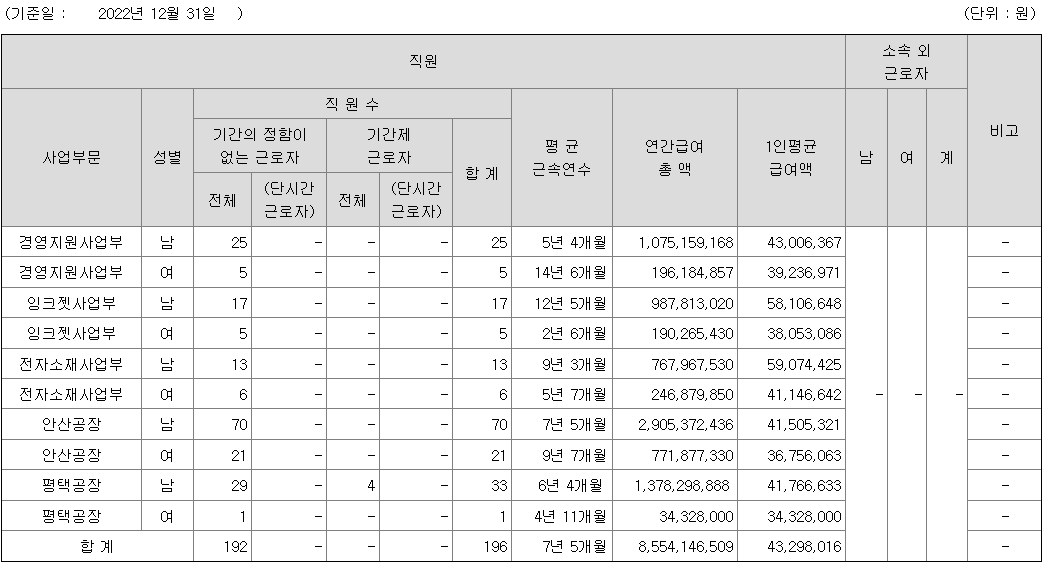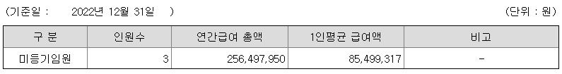 미등기임원의 평균연봉은 8549만원이고 직원수는 3명입니다.