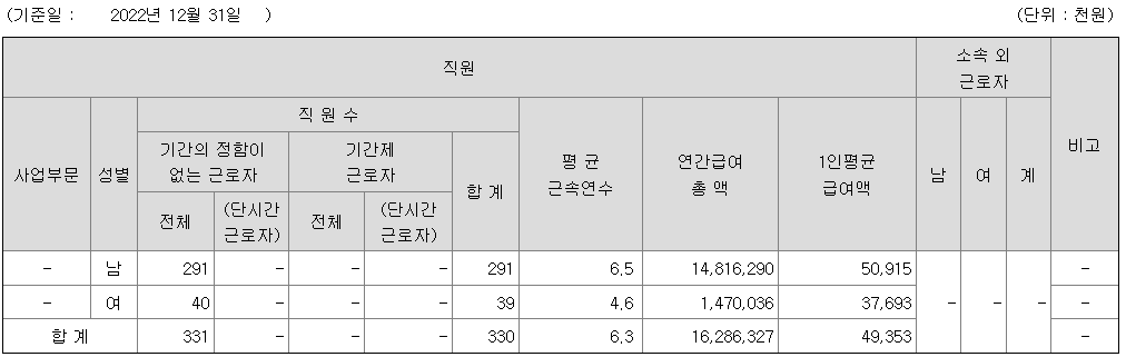| 자연과환경 연봉 2022년 기준 공시자료 (0) | 2024.03.08 |