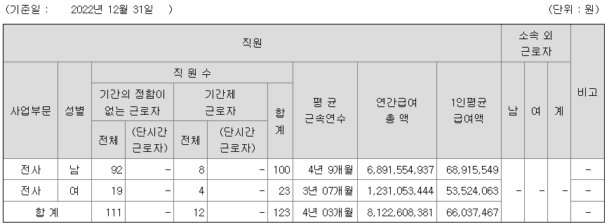 | 코퍼스코리아 연봉 2022년 기준 공시자료 (0) | 2024.03.06 |
