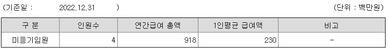미등기임원의 평균연봉은 2억 3000만원이고 직원수는 4명입니다.