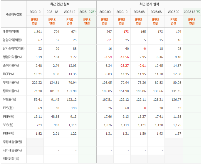 2022년 매출은 674억, 영업이익은 25억, 당기순이익은 88억입니다. 그리고 영업이익률은 3.77%입니다.