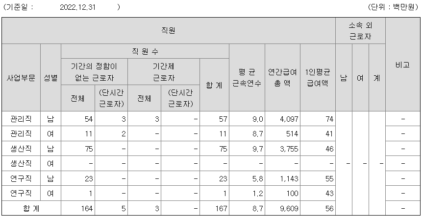 | 우림피티에스 연봉 2022년 기준 공시자료 (0) | 2024.03.09 |