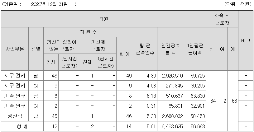 미등기임원의 평균연봉은 1억 2426만원이고 직원수는 7명입니다.