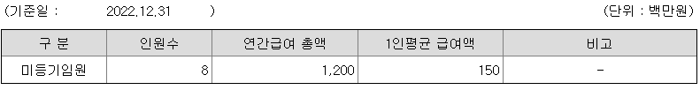 미등기임원의 평균연봉은 1억 5000만원이고 직원수는 8명입니다.