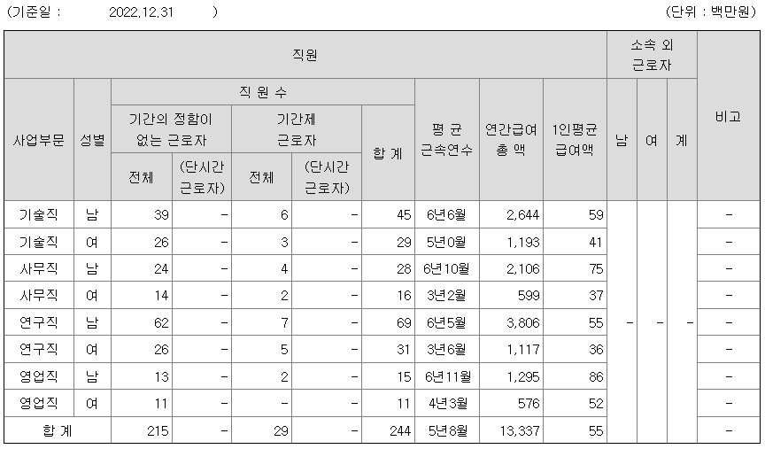 전체 평균연봉은 5500만원이고 직원수는 244명입니다.