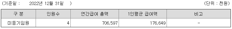 미등기임원의 평균연봉은 1억 7664만원이고 직원수는 4명입니다.