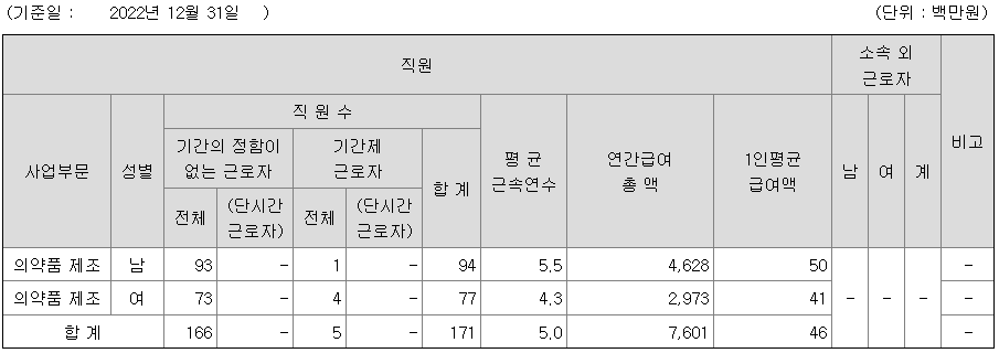 옵투스제약 연봉 2022년 기준 공시자료