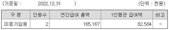 미등기임원의 평균연봉은 8258만원이고 직원수는 2명입니다.