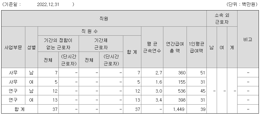 전체 평균연봉은 3900만원이고 직원수는 37명입니다.