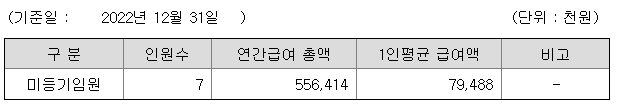미등기임원의 평균연봉은 7948만원이고 직원수는 7명입니다.