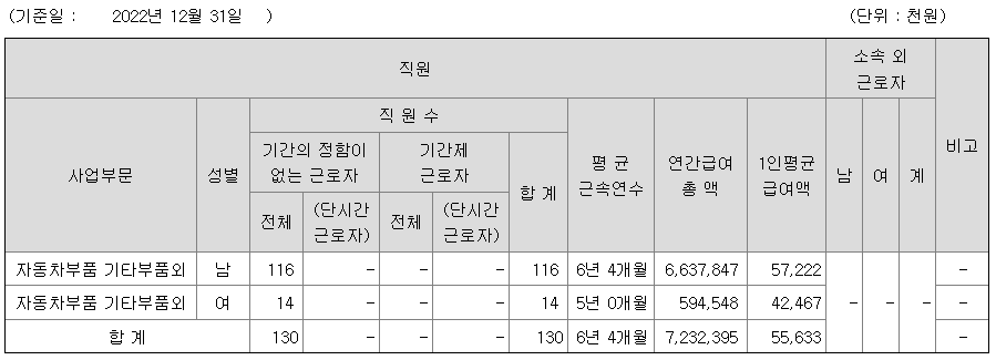 미등기임원의 평균연봉은 7948만원이고 직원수는 7명입니다.