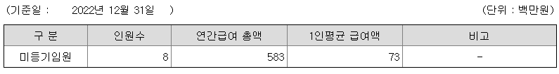 미등기임원의 평균연봉은 7300만원이고 직원수는 8명입니다.