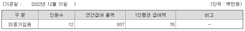 미등기임원의 평균연봉은 7800만원이고 직원수는 12명입니다.