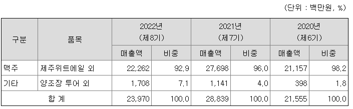 당사는 '크래프트 맥주의 대중화', '맥주의 미식 문화 창조' 라는 비전을 가지고 2015년 2월 회사를 설립하였습니다. 국내 맥주시장은 수입맥주의 다양화, 하우스 맥주 및 소규모 양조장의 증가로 인하여 크래프트 맥주에 대한 관심이 계속 상승하고 있으며, 차별화된 제품과 프리미엄 맥주에 대한 관심 증가로 국내 주류소비 트렌드가 급속히 변화하고 있는 추세입니다. 당사는 이러한 트렌드 변화에 발맞추어, 우수한 품질의 다양한 맥주들을 대량 생산하는 모델로 소비자의 변화된 니즈를 충족시키고 국내 맥주시장의 질적 성장에 기여하고자 하는 목표를 가지고 있습니다.