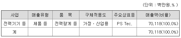당사는 전력기기 사업을 주력으로 하고 있으며 자회사가 영위하는 사업은 태양광발전사업과 전력 판매 사업입니다. 기타의 상세한 사항은 동 보고서 'Ⅱ. 사업의 내용'을 참조하시기 바랍니다.