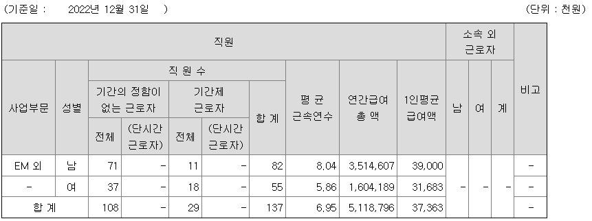 미등기임원의 평균연봉은 8137만원이고 직원수는 10명입니다.