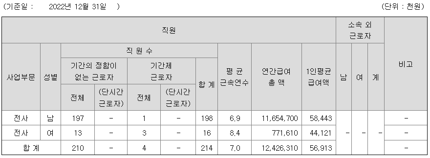 미등기임원의 평균연봉은 1억 5675만원이고 직원수는 7명입니다.