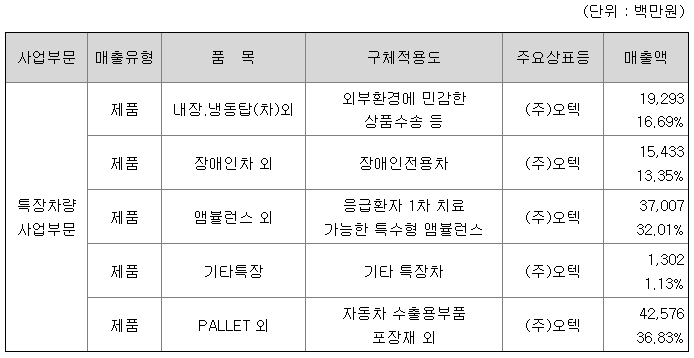지배회사인 당사는 특수차량 제조 전문기업으로서 최첨단 음압 앰뷸런스와 한국형 앰뷸런스 복지차량, 암검진 및 전문 진료차량, 특수 물류차량, 의료기기, 기타 자동차부품을 생산하는기업입니다.