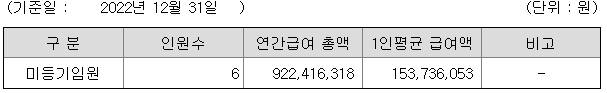 미등기임원의 평균연봉은 1억 5373만원이고 직원수는 6명입니다.