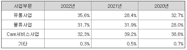 1) 사업부문별 매출액 비중 (연결)