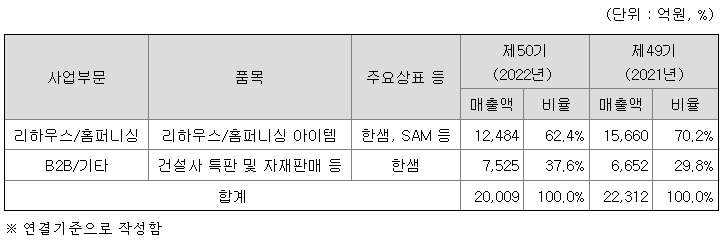 당사는 '고객의 집을 세상에서 가장 머물고 싶은 공간으로 바꾸는 것'이라는 사명 하에 리빙 분야에서 리하우스 및 홈퍼니싱 사업을 영위하고 있습니다. 당사는 K-IFRS에 따라 14개의 종속회사를 보유하고 있으며, 종속회사들의 주요사업은 다음과 같습니다.