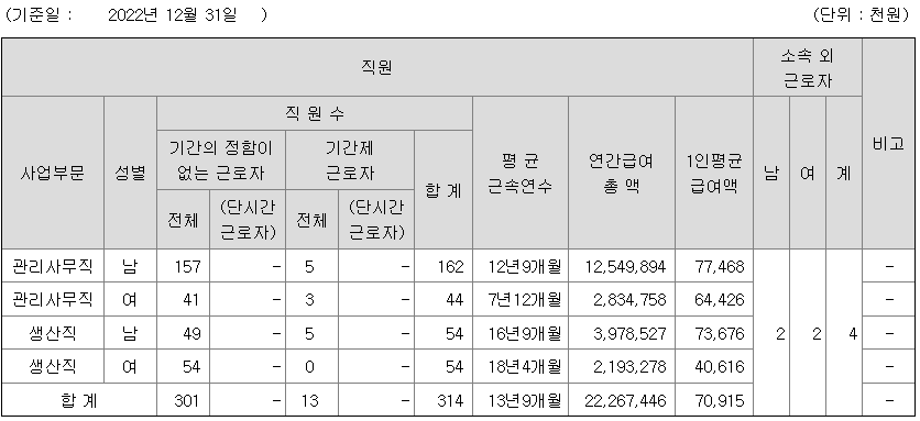 | 관리사무직 | 남 | 162 | 12년 9개월 | 77 |