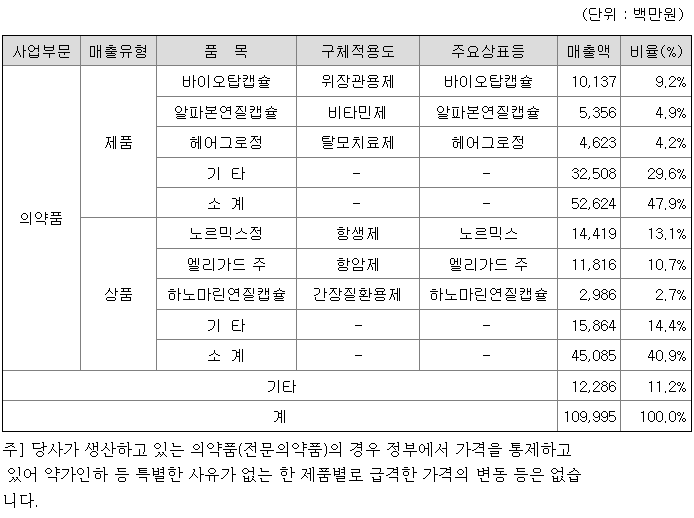당사는 1973년 설립된 이래 국내 제약시장에서 각종 의약품 생산 및 판매를 통해 국민건강증진에 기여하고 있으며 1989년 한국거래소에 상장되었습니다.