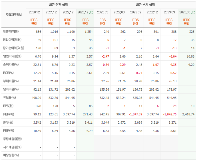 2022년 실적은 1100억, 영업이익은 15억입니다. 그리고 영업이익률은 6.40%입니다.